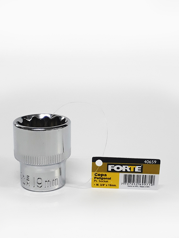 Fabricados en Acero Aleado al Cromo Vanadio. Su acabado cromado pulido tipo espejo, brinda excelente resistencia a la corrosión y una gran presentación. Su Sistema de puntas redondeadas apoya el esfuerzo en los lados y no en las esquinas de las tuercas, evitando que estas se desgasten. Cumple estándares internacionales ANSI con excelente resistencia al torque, lo que le permite ser útil para trabajos pesados. Poligonal = 12 puntas de agarre X Mando 3/8" = Diámetro de manejo X Diámetro 19mm = Diámetro de agarre de la pieza.