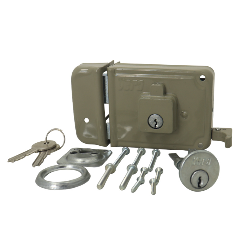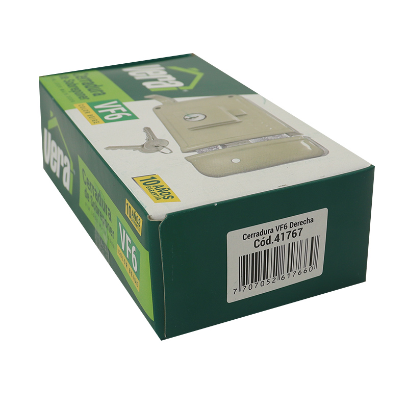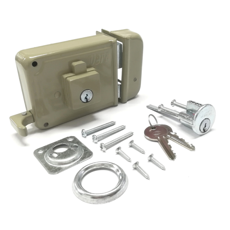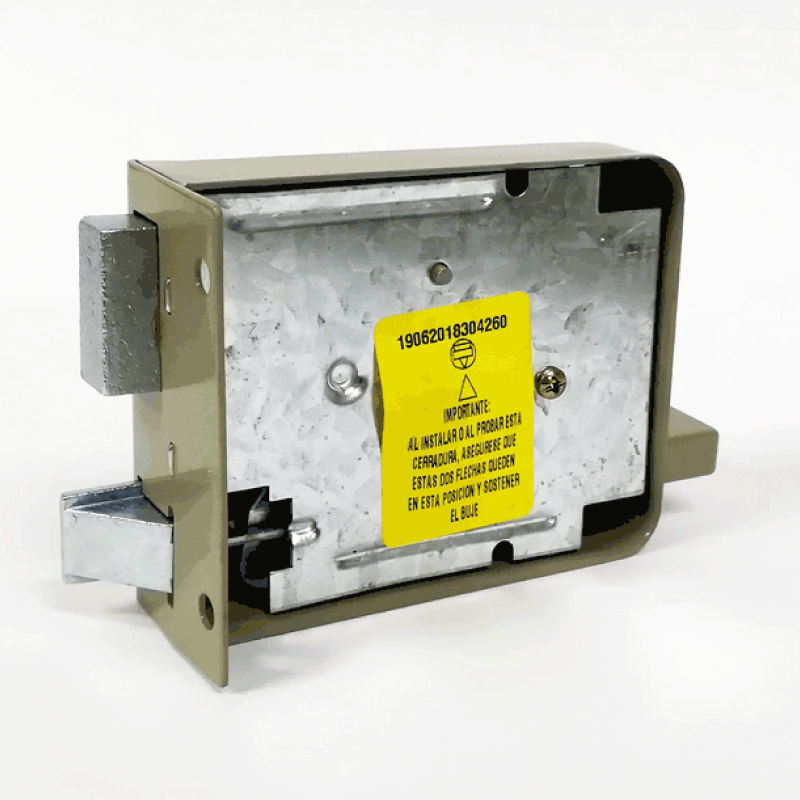 Cerradura de sobreponer para puerta principal, disponible para apertura del lado derecho. Instalación en cuerpos de madera o laminados metálicos. Macho en zamak que se acciona totalmente con tres giros de la llave y bloqueo del picaporte en la posición final del macho. Permite instalación con soldadura en puertas metálicas. Centro de instalación estándar a 50 mm. Cilindro de 5 pines. Para Determinar el Lado de la Puerta, Deberás Pararte Frente al Exterior. Si las Bisagras Están en el Lado Derecho, La Puerta es Derecha y si las Bisagras Están Instaladas del Lado izquierdo, La Puerta es Izquierda.