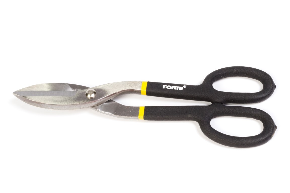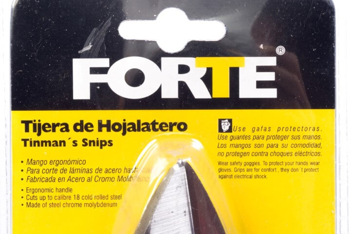 Cumple norma ANSI, forjado en acero al carbono, filo endurecido y rugoso para evitar levantamiento de la lámina, mango rugoso para operación segura, usado para corte de acero inoxidable, coll rolled y aluminio. medida 12"