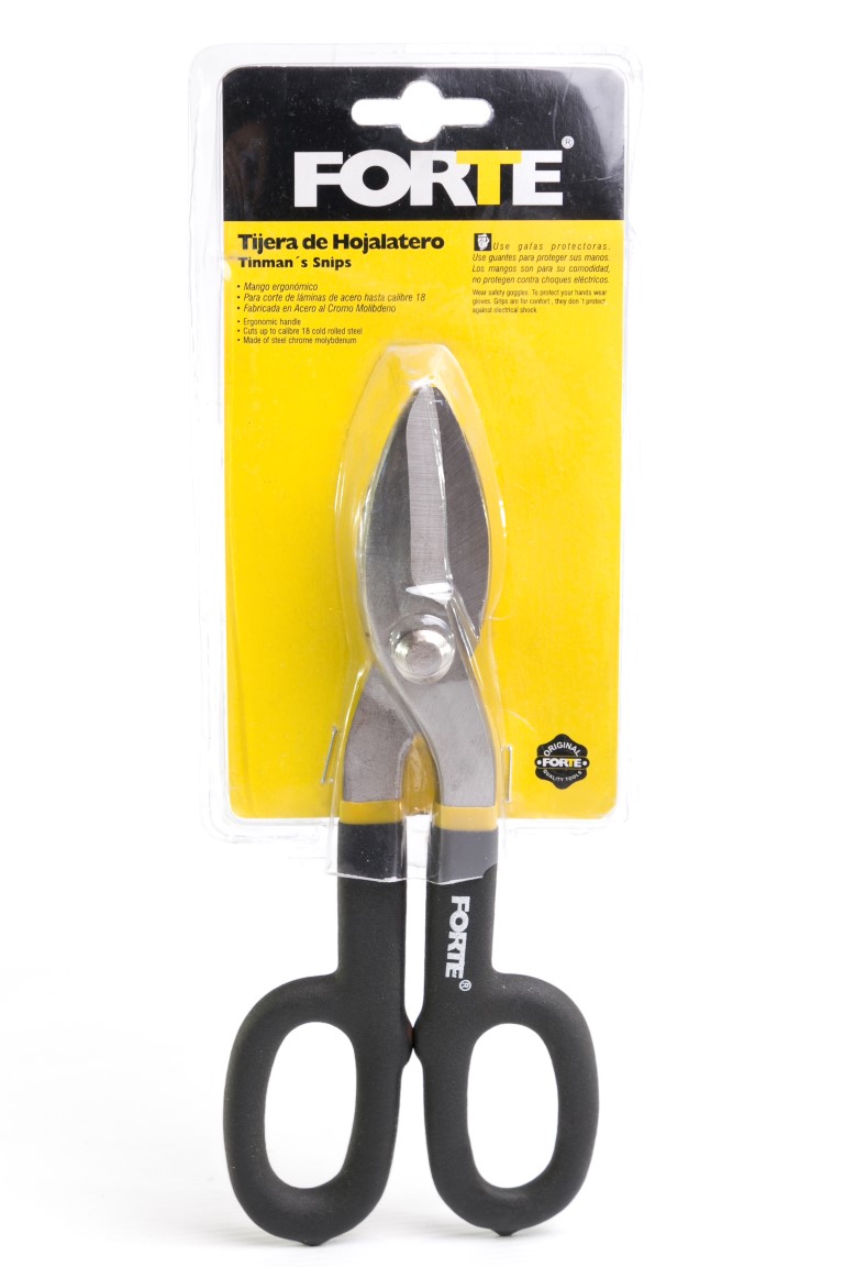 Cumple norma ANSI, forjado en acero al carbono, filo endurecido y rugoso para evitar levantamiento de la lámina, mango rugoso para operación segura, usado para corte de acero inoxidable, coll rolled y aluminio. medida 8".