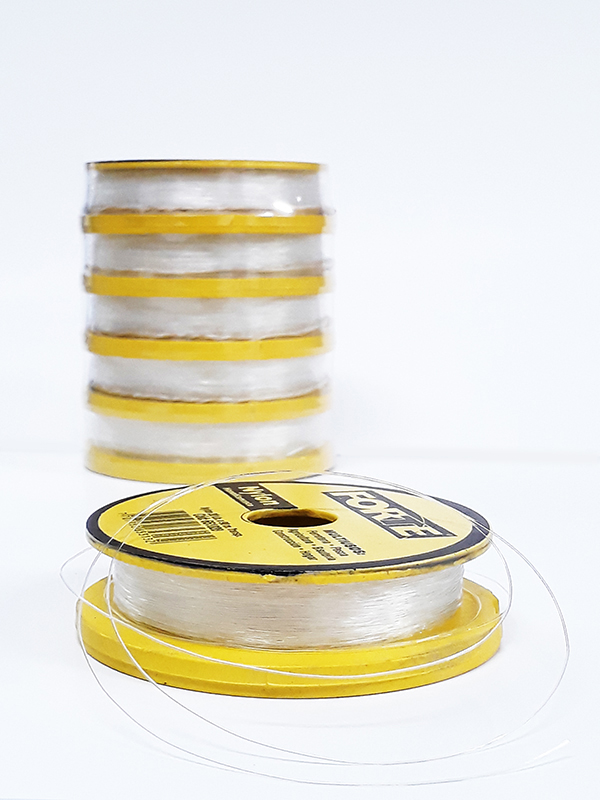 Monofilamento hecho con Nylon copolímero, transparente, desarrollado con materiales de alta calidad, que proporcionan flexibilidad, suavidad y resistencia a la ruptura y a la abrasión. De 35 libras de resistencia a la ruptura, diámetro 0,60 de milímetro y 90 metros de longitud. Carretes de fácil manipulación y desenrollado; interconectados para lograr más metros lineales.