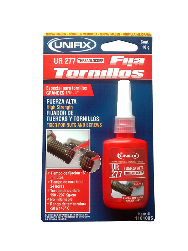 FIJA TORNILLOS FUERZA ALTA es una traba química anaeróbica, que polimeriza (seca, cura, endurece) en ausencia de aire y al estar en contacto entre dos superfcies metálicas, fjándolas, reteniéndolas, bloqueándolas e impidiendo su alojamiento. FIJA TORNILLOS FUERZA ALTA fue desarrollado para el uso en uniones roscadas, por cuanto la traba química se acomoda entre los hilos de la rosca, ocupando los espacios interiores y al polimerizar logra que los cuerpos trabajen como si fuera uno solo, absorbiendo los golpes y vibraciones, impidiendo el a?ojamiento, el desajuste y la pérdida de las piezas. FIJA TORNILLOS FUERZA ALTA es un efectivo sellante y evita la oxidación de las supericies. El exceden
