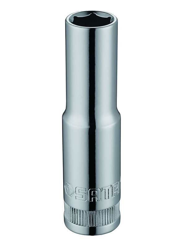 Copa con paredes de poco espesor con tratamiento térmico. Aleación en cromo vanadio que permite una alta resistencia. Recubrimiento en cromo niquelado que evita la oxidación. Rayado en el cuerpo de la copa para fácil identificación. Marca bajo relieve. Las copas cuentan con la tecnología Surface®Drive de SATA que protége tanto la herramienta como el cuadrante de las piezas roscadas que se ajustan con ellas.