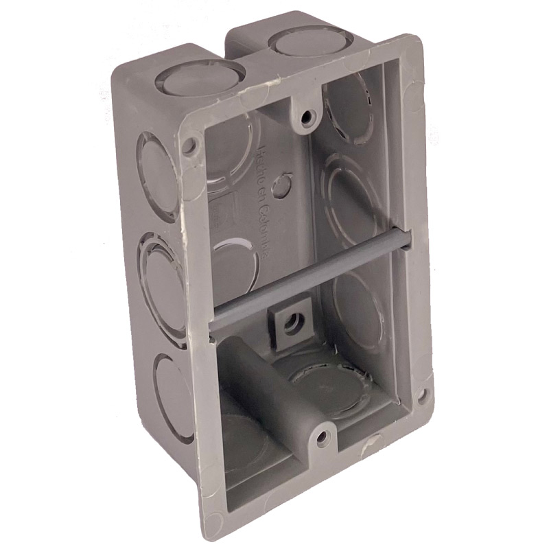 Caja rectangular 2X4 fabricada en polipropileno material libre de halogenos, bordes y fijación de tornillos reforzados. Entrada para tubería de 1/2" y 3/4", Knockput fáciles de retirar, tiene mayor capacidad interna. Cumple Retie. Para uso en instalaciones eléctricas en general. Referencia 144014 de Ciles.