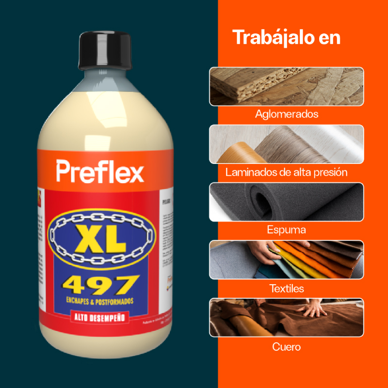 Adhesivo de contacto de alto desempeño, formulado con base en cauchos de cloropreno y resinas fenólicas de excelente calidad. Tiene alto contenido de sólidos y alta viscosidad, de gran fuerza de adhesión y alta resistencia a la temperatura. Es de color amarillo claro y presenta olor característico a solventes orgánicos. Se puede aplicar con brocha, llana, espátula, cepillo o mecánicamente.
