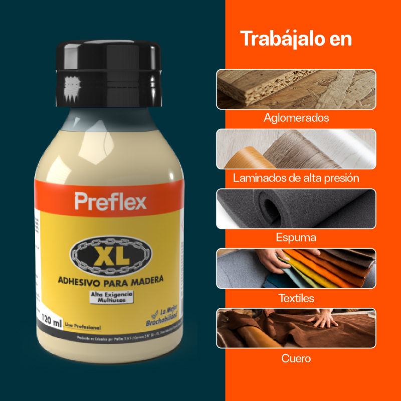 Adhesivo de contacto de alto desempeño, formulado con base en cauchos de cloropreno y resinas fenólicas de excelente calidad. Tiene un apropiado contenido de sólidos y iscosidad, amplio tiempo abierto, y excelente brochabilidad. Es de color amarillo ocre y presenta olor característico a solventes orgánicos. Se puede aplicar con brocha, llana, espátula, cepillo o mecánicamente.