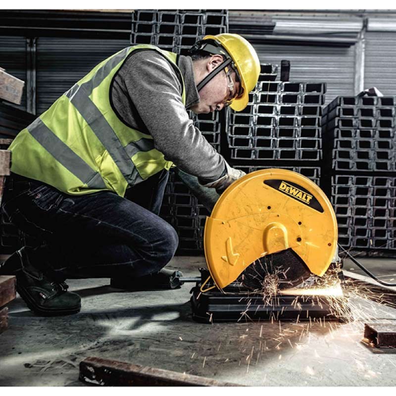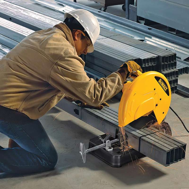 Cortadora de Metales ferrosos de 14", Capacidad de Corte 5", Útil en cortes de perfiles y tuberías, Y trabajos en Acero Inoxidable. Motor de 2300W y Velocidad de 4.000 RPM. Carbones de Fácil Acceso. Traba de Eje Incorporada y Guarda Robusta. Guía 45°. Incluye Disco Abrasivo para Corte. Peso 35 lb.
