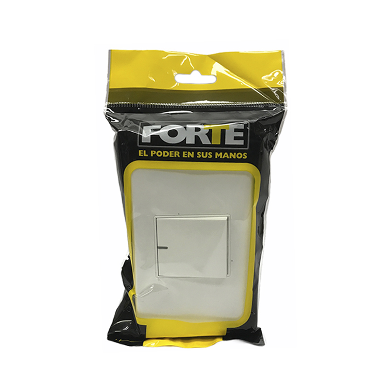 Interruptor sencillo para incrustar en la pared. Para el encendido y apagado de circuitos de iluminación con bombillos incandescentes, flourescentes, ahorradores y LED. Permite el control ON/ OFF de luminarias y circuitos desde dos lugares diferentes. Fabricado en policarbonato, contactos punto de plata y herrajes en cobre. . Funciona con un voltaje a 125 a 250 V para el uso en circuitos de 10 Amp. Dimensiones: 118mm*73mm. Indicado para instalaciones residenciales y comerciales. Cumple con normas internacionales IEC y con RETIE . Serie A10 de FORTE. Referencia A1012.