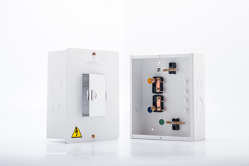 Tablero monofásico de 4 circuitos puerta 4 hilos de 120 voltios de75 amperios, fabricado en lamina colled rolled calibre 20 Recubrimiento de pintura electroestática blanca. Con puerta. Barrajes en cobre . Referencia F4CMP-4H de Famel.