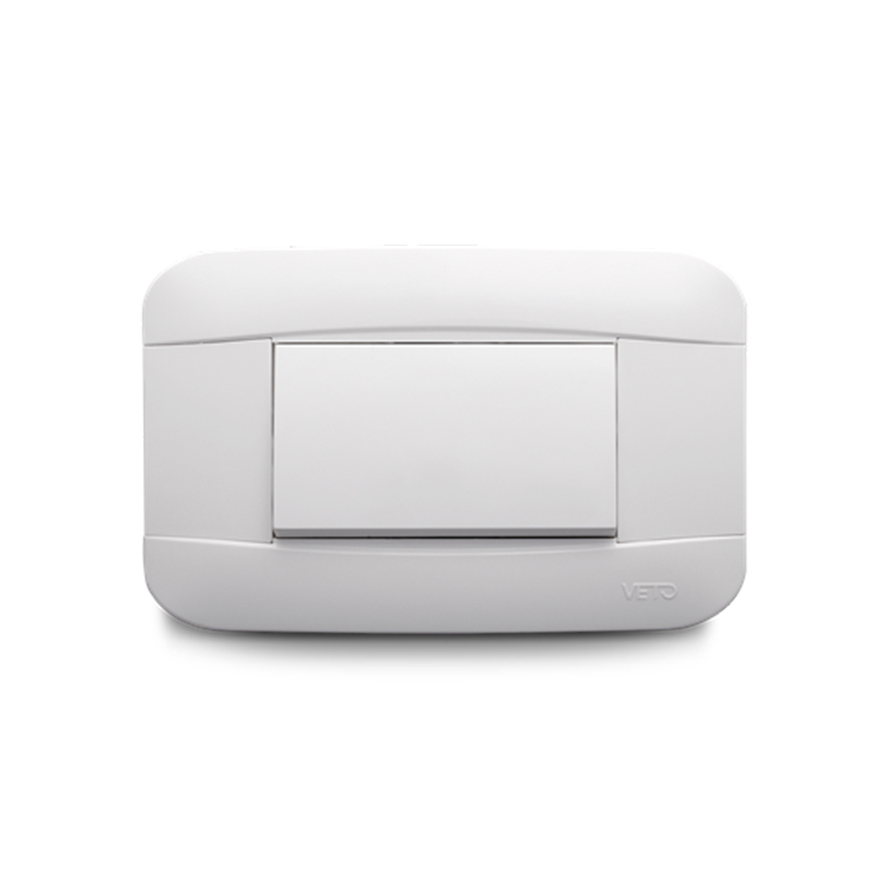 Diseño clásico tipo rectangular con esquinas curvas. Diseño que incluye una Bociola (pieza móvil sujeta por el balancín plástico), que permite el movimiento alternado del mismo para la conexión y desconexión de la corriente. Tornillos para sujeción de cables de alimentación eléctrica, compatibles con destornilladores planos o estrella.