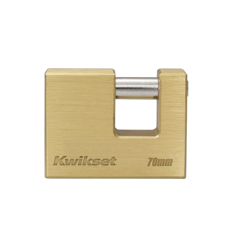 Los candados de bayoneta Kwikset® de latón son una excelente opción para las necesidades de seguridad de uso profesional y cotidiano. Adecuado para puertas enrollables o puertas de camiones, los mismos evitan los ataques de los cortadores de pernos. Estos candados de latón macizo utilizan una barra transversal de acero endurecido que gira para evitar ataques de sierra. Además, los pasadores de latón y los resortes de acero inoxidable brindan alto rendimiento a largo plazo.
