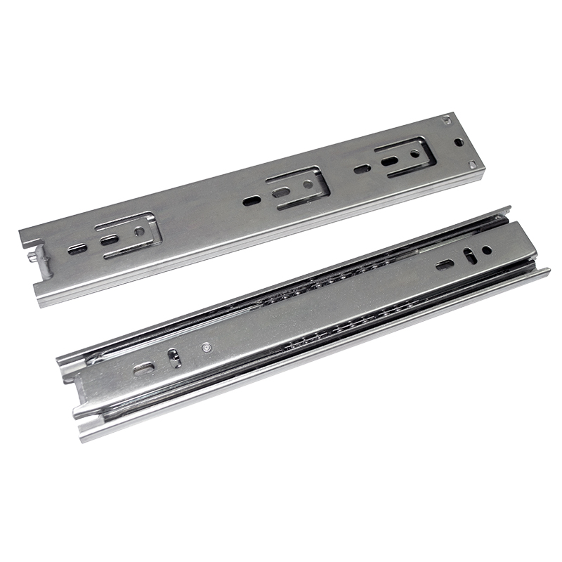 Riel de extensión total de carga media, fabricado en acero con recubrimiento galvanizado para mayor resistencia y durabilidad. Diseñado para soportar hasta 30 kg por par y con una vida útil de 25.000 ciclos de uso. Ideal para cajones en escritorios, muebles comerciales, residenciales y gabinetes de cocina donde se requiere una apertura completa. Disponible en longitudes de 250, 300, 350, 400, 450, 500 y 550 mm.