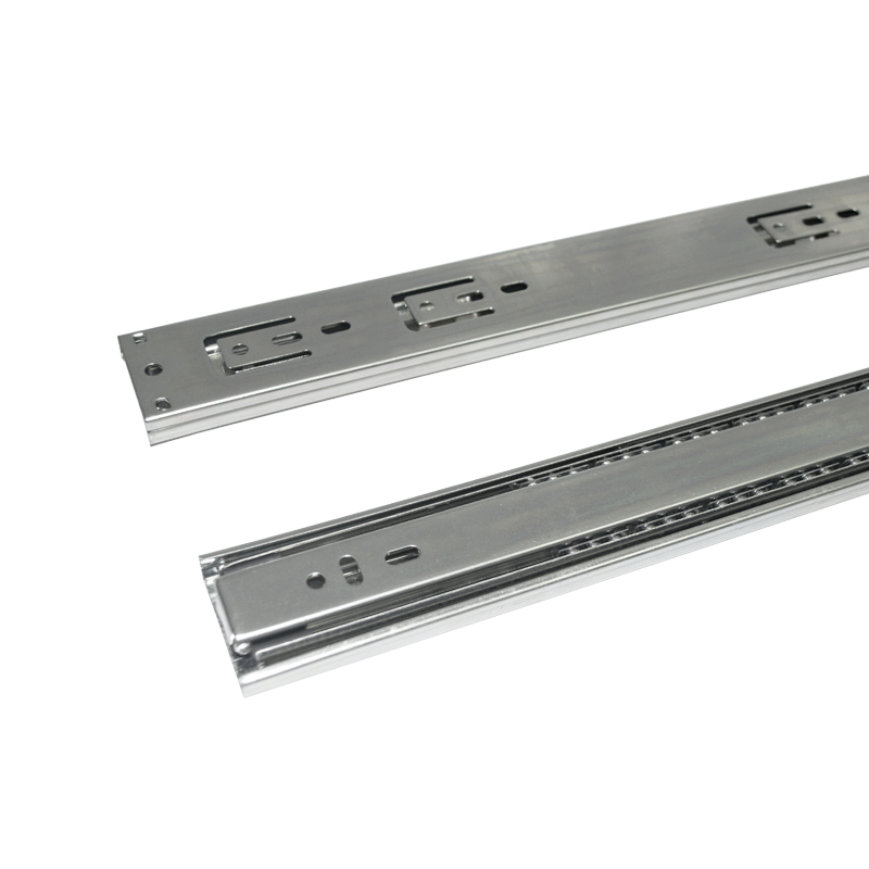 Riel de extensión total de carga media, fabricado en acero con recubrimiento galvanizado para mayor resistencia y durabilidad. Diseñado para soportar hasta 30 kg por par y con una vida útil de 25.000 ciclos de uso. Ideal para cajones en escritorios, muebles comerciales, residenciales y gabinetes de cocina donde se requiere una apertura completa. Disponible en longitudes de 250, 300, 350, 400, 450, 500 y 550 mm.