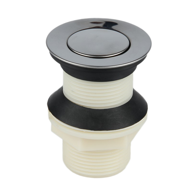 Desague tipo push sin rebose, fabricado en plástico con botón push cromado, largo 20 cm para uso de lavamanos.