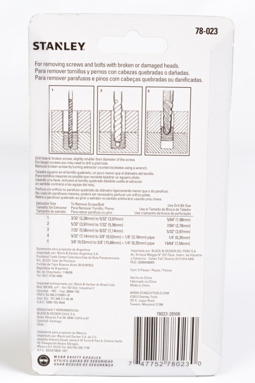 5 Piezas · Contenido · 5/64 pul 1N° (1.98 mm) · 7/16 pul 2N° (2.78 mm) · 5/32 pul 3N° (3.97 mm) · 1/4 pul 4N° (6.35 mm) · 19/64 pul 5N° (7.54 mm)