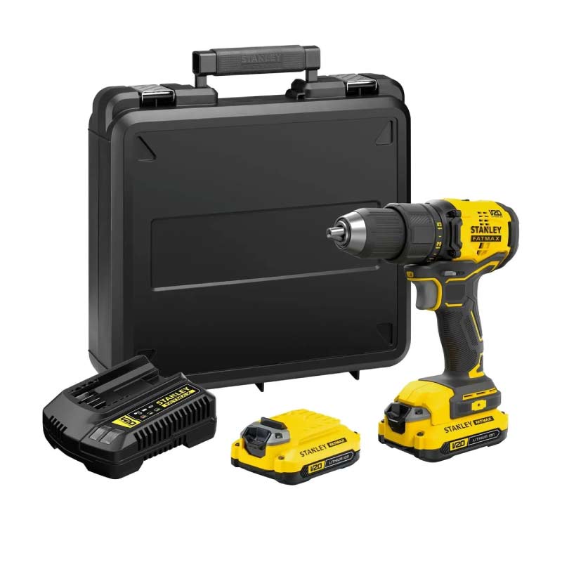 Taladro atornillador sin escobillas stanley 20v fatmax con mandril de 1/2" (13 mm), sin llave para un cambio de broca rápido y fácil. 16 posiciones de torque, 10% más torque comparado con modelos anteriores, batería tecnología mejorada, mayor duración, autodescarga mínima y sin efecto memoria. Interruptor con módulo electrónico control de velocidad variable y protección contra sobrecargas, 2 velocidades 0-400/ 0-1500 rpm. La nueva baterías de 20v puede utilizarse con todas las nuevas herramientas del sistema v20. incluye: 2 baterias + 1 cargador + 1 empaque (caja plastica o bolso de lona, segun disponibilidad)