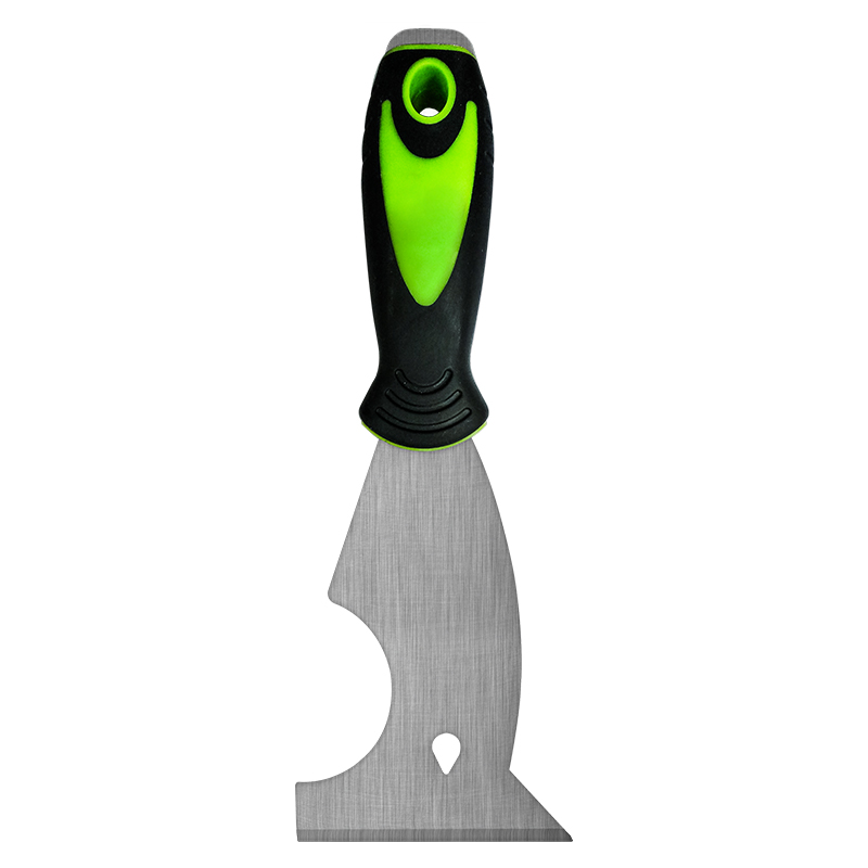 Espatula de 9 usos; Limpia excesos de Pintura, Saca Clavos, Limpia Uniones o grietas, Abre envase de Galon, Aplicador de Estuco, Martillo, Picador.