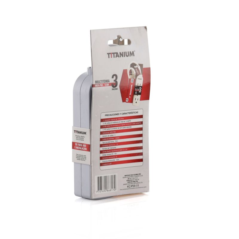 Amperios: 15A Voltios: 125V Conexión: Polo a tierra Longitud cable: 0,5M Salidas: 3