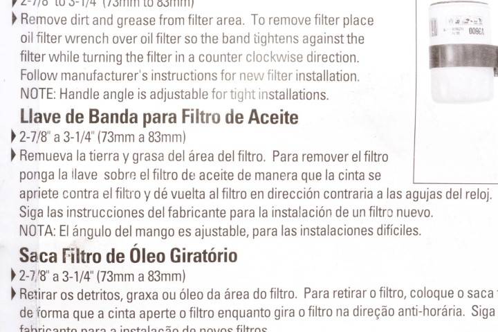 Llave de Lona Para Filtro de Aceite hasta 6" 78-230