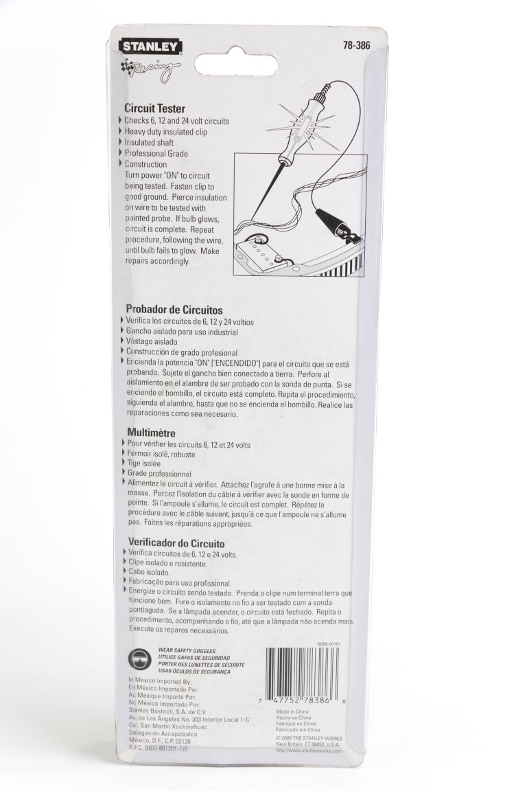 Verifica los circuitos de 6, 12 y 24 voltios.Gancho aislado de calidad industrial.Vástago aislado.Construcción de grado profesional.