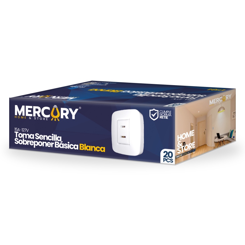 Toma sencilla de sobreponer, ideal para aplicaciones comerciales, residenciales, oficinas entre otras. Voltaje 125V. Capacidad: 15A. Color: Blanco