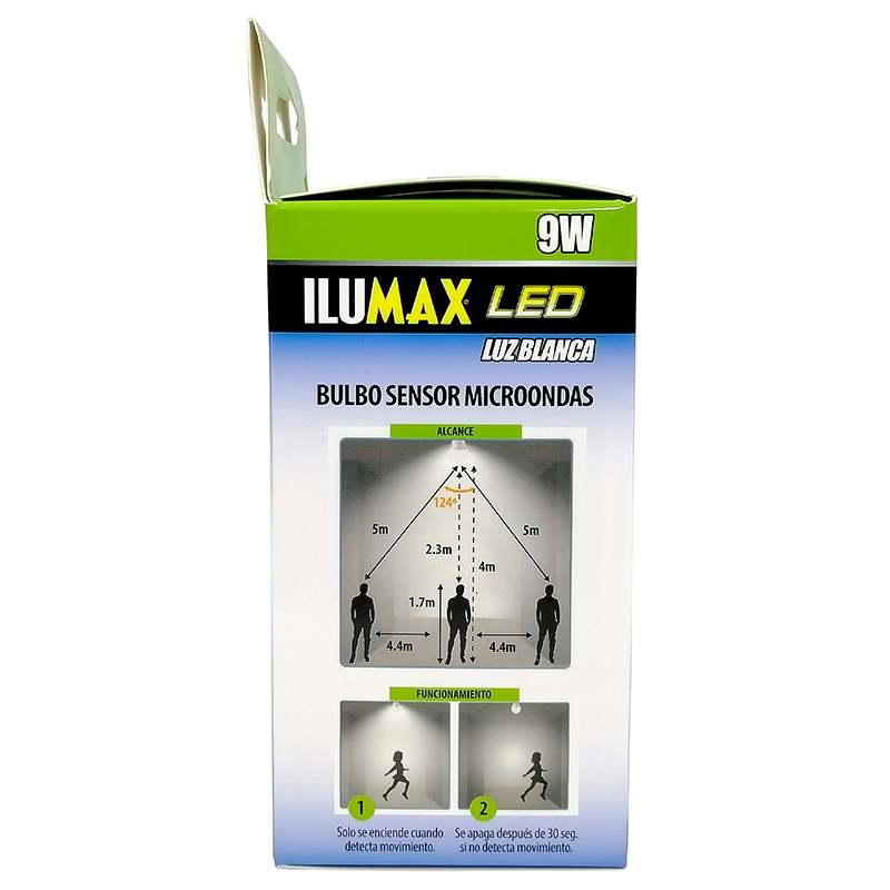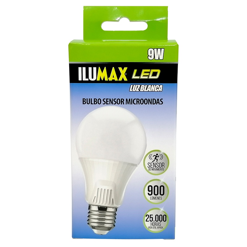 Bulbo Led 9w 900 Lm Con Sensor De Movimiento Microondas. Ángulo Del Sensor: 124°. Alcance Del Sensor Diámetro De Detección 5 Metros. Voltaje: 100-240v. Tiempo Encendido 30 Seg.