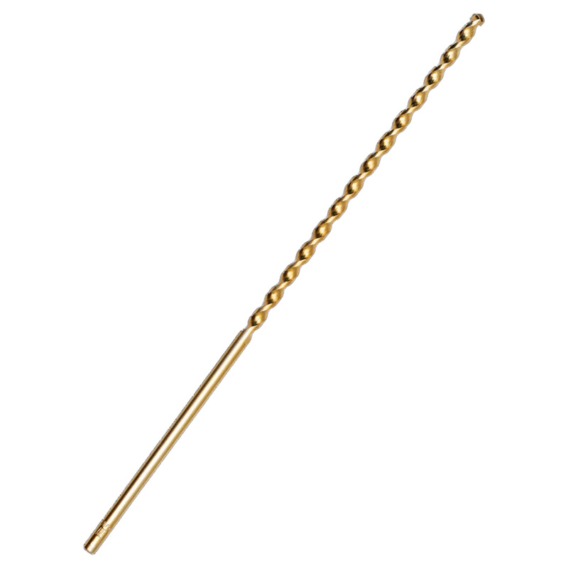 Broca con excelentes canales que garantizan perforaciones mas limpias, rapidas y eficientes, evitando la obstruccion. Mayor resistencia al calentamiento y el desgaste, punta de tungsteno tipo diamante. Terminado en zincado dorado. Largo 13" (330mm)