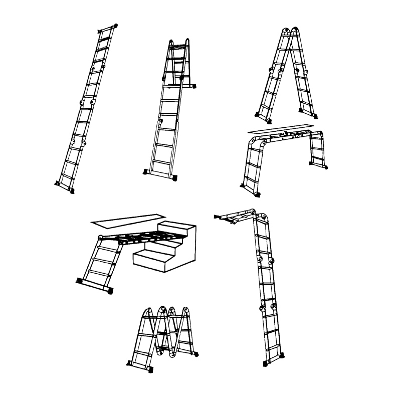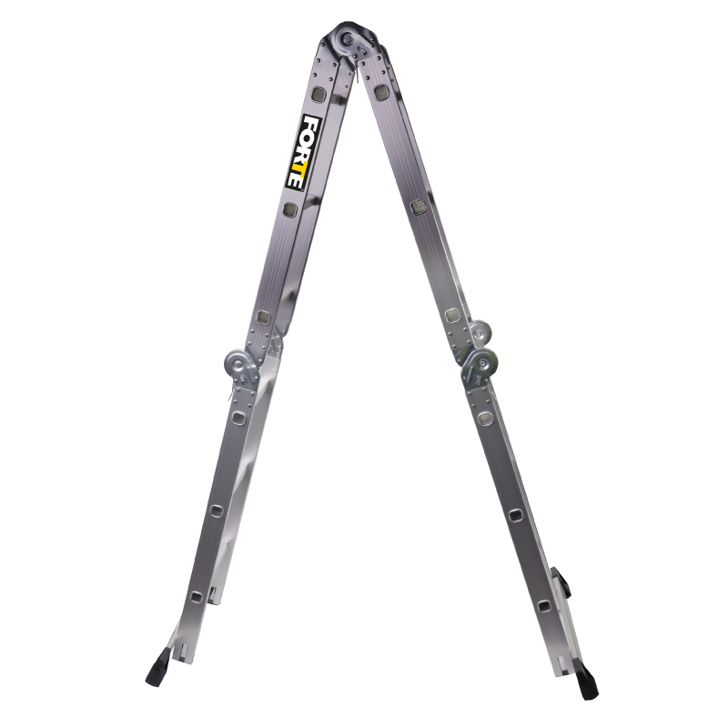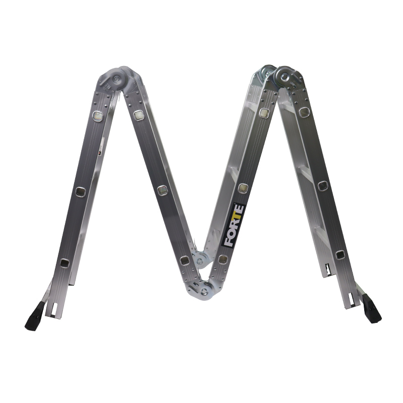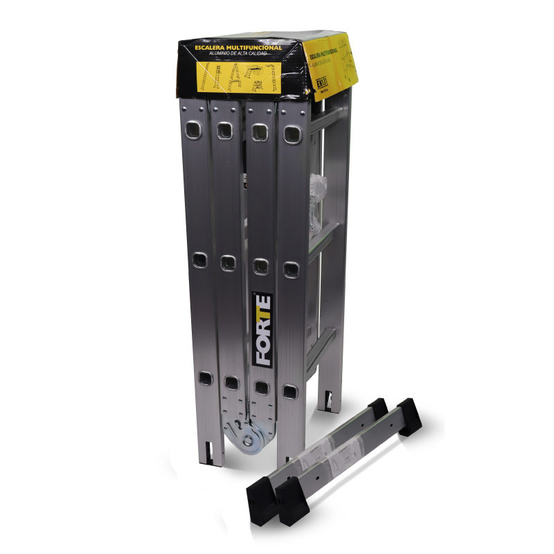 Escalera multifuncional fabricada en aluminio. Posee 4 cuerpos cada uno de 3 peldanos. Capacidad maxima de carga 113 kg, altura total 3,7 mt.