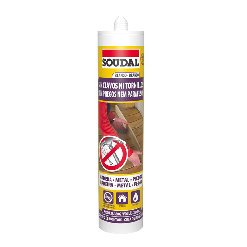 Adhesivo de Montaje base Agua para uso Interior de gran agarre inicial, uno de los mejores del mercado, adhiere productos ornamentales y decorativos en interiores tales como maderas, cornisas, adornos de Icopor, guardapolvos, guardaescobas, etc.