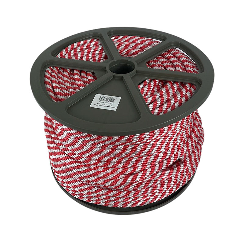 Soga con tejido espiroide en color blanco y rojo textura fuerza y resistencia, presentacion en carrete pequeño de 100 mts, peso 4,3 kgs por carreta. Tapa plastica de 30 centimetros de largo alto del carrete 25 cms. Utilizado en el hogar, construcción, artesanias, zonas de campamento y vehiculos. No hay un grado de toxicidad conocido por el uso de este producto, recomendamos la vigilancia cuando este sea utilzado por niños. Uso, utilizacion, tipo de nudo y amarre responsabilidad exclusiva del consumidor final.