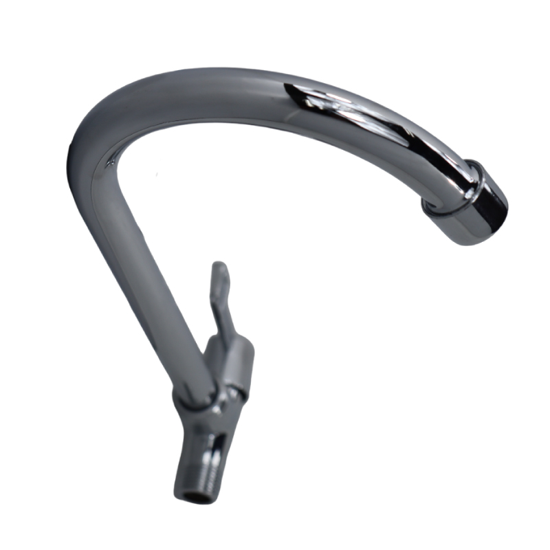 Griferia Sencilla Lavaplatos para instalar en Pared de Cocina con cuello fijo, mando en Palanca, cuerpo y mando elaborado en Aleación de Zinc recubierto en Zinc.