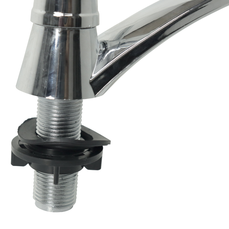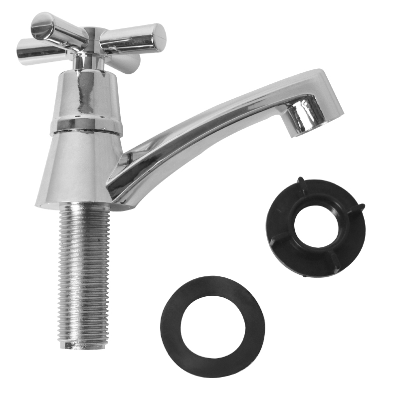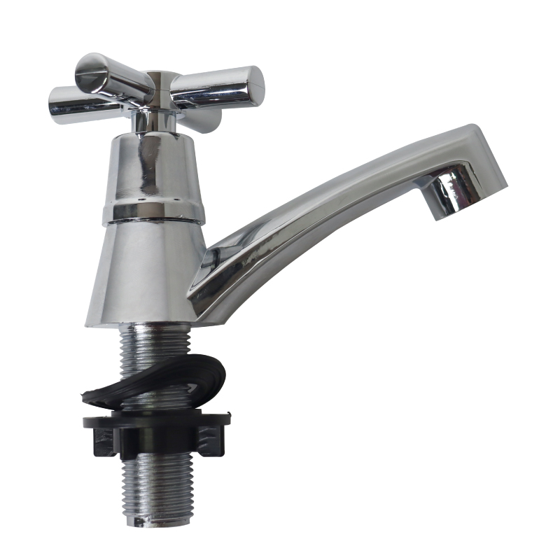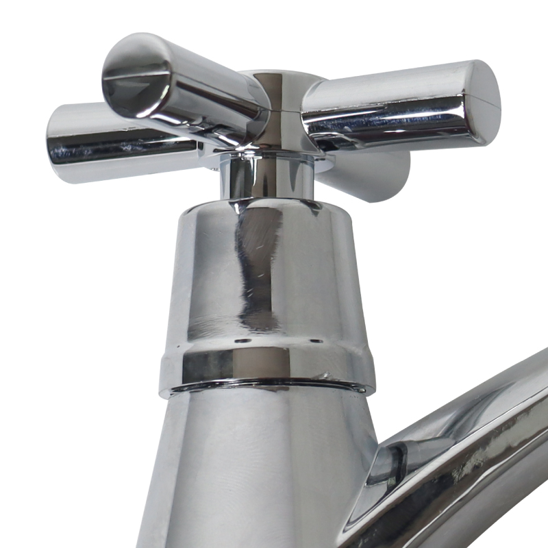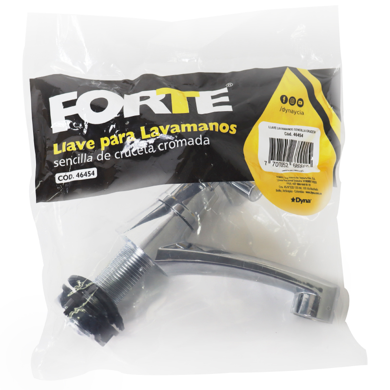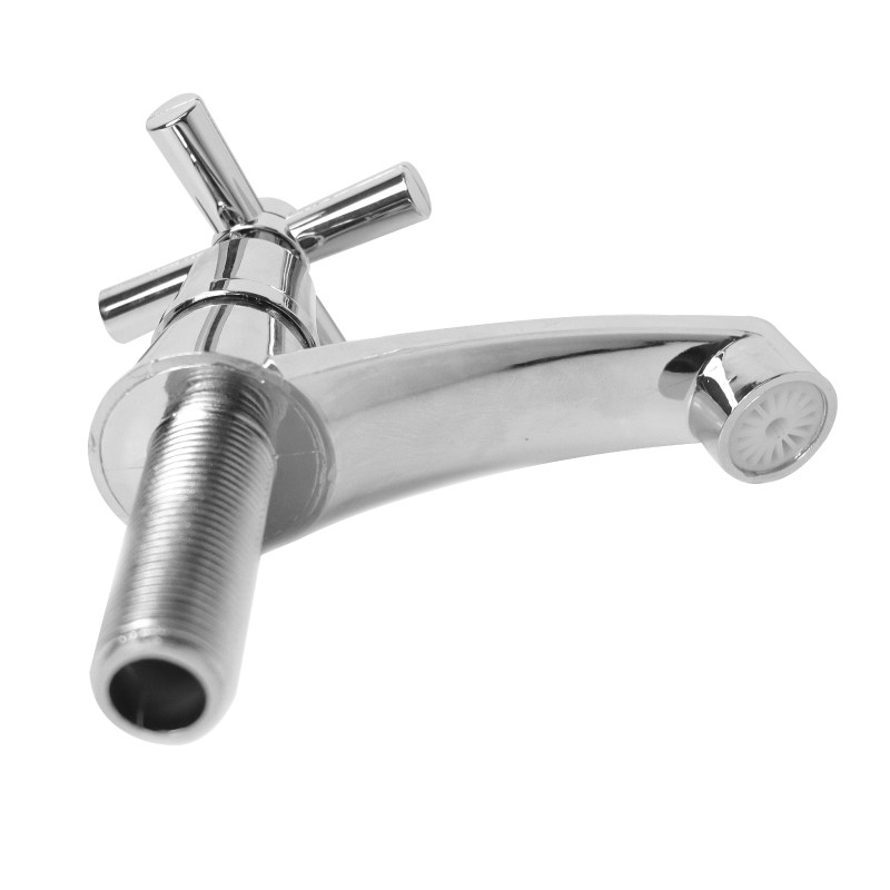 Llave para Lavamanos Sencilla con mando en cruceta, cuerpo elaborado en ABS y acabado cromado de alta durabilidad.