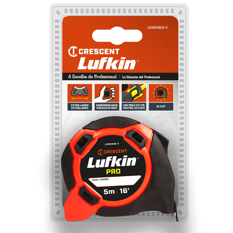 Cinta elaborada en acero templado de alta calidad con revestimiento epóxico de color amarillo anti reflejante, con escalas (sistema métrico decimal y en pulgadas) en color negro y rojo para fácil identificación y lectura. Gancho elaborado en acero de alta calidad en el extremo para asegurar medidas precisas. Carcasa de plástico ABS recubierto con caucho moldeado siendo resistente al impacto, anatómico, cómodo y manejable. Freno y botón pisador elaborados en Nylon Ultramatic, que mantienen la cinta sujetada.