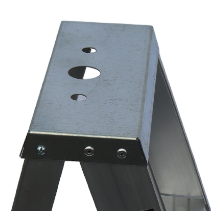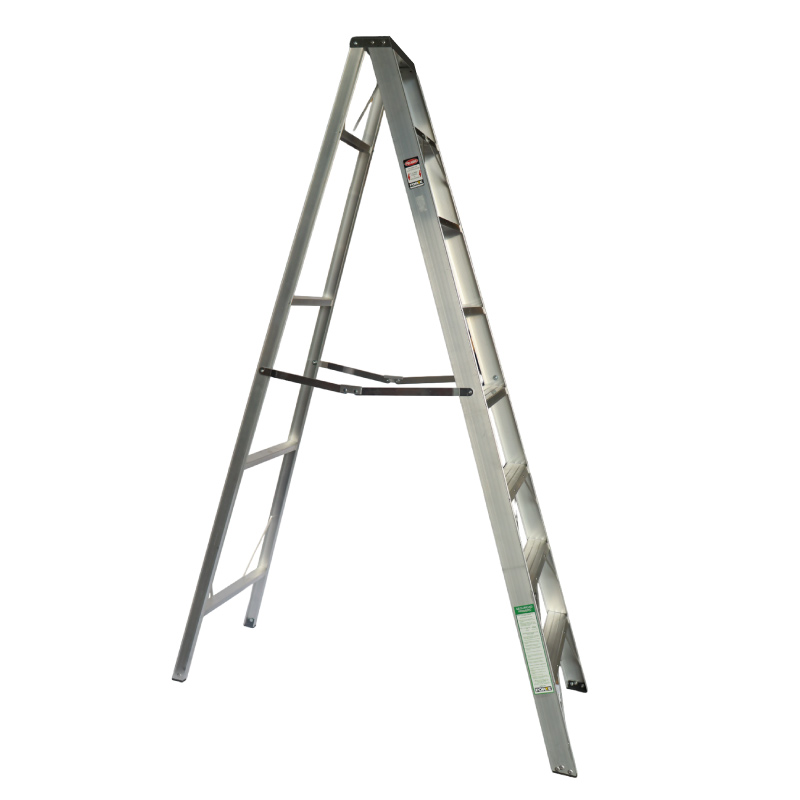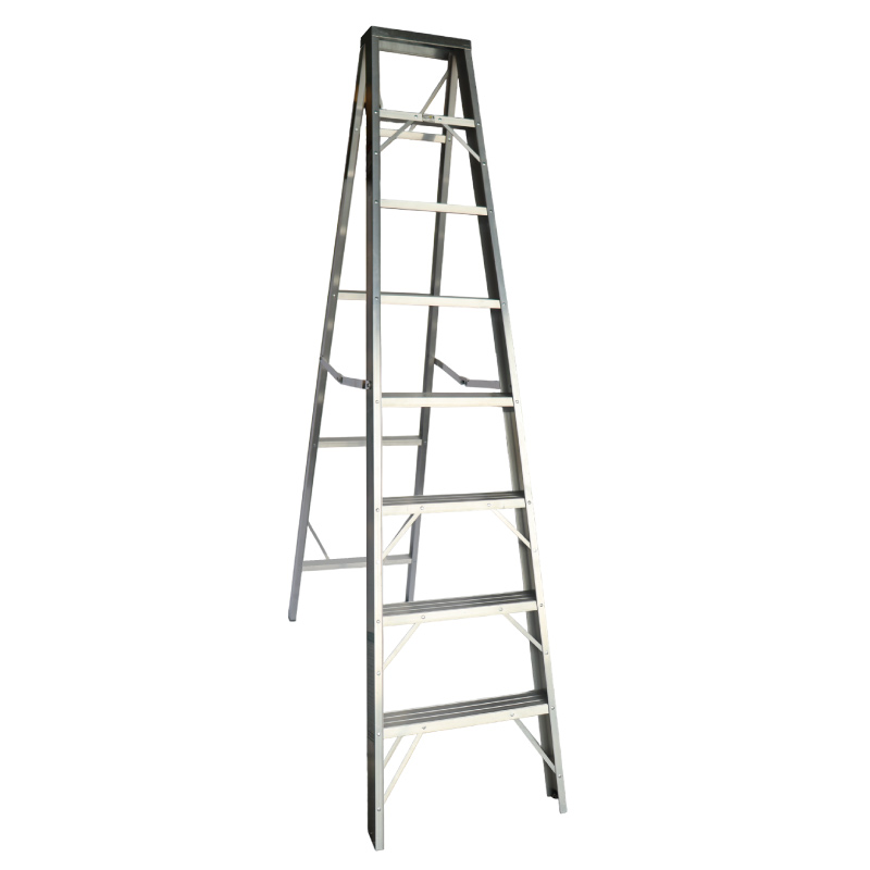 Escalera tijera en aluminio, tipo I uso industrial, 8 pasos, capacidad de carga 137 kg, se fabrican bajo la norma ANSI 14.2. Aluminio estructural de alta resistencia.