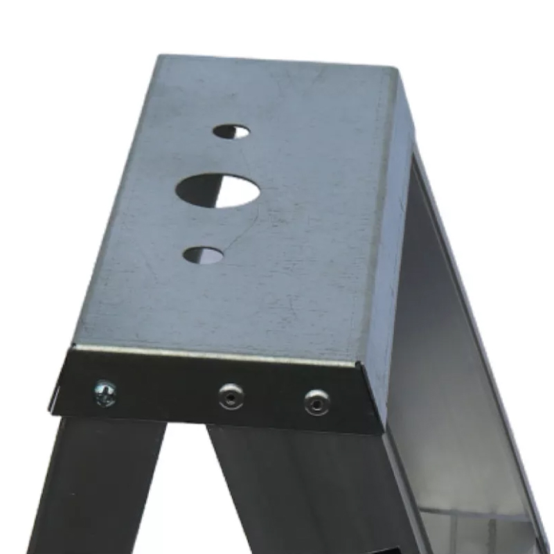 Escalera tijera en aluminio, tipo I uso industrial, 11 pasos, capacidad de carga 137 kg, se fabrican bajo la norma ANSI 14.2. Aluminio estructural de alta resistencia.