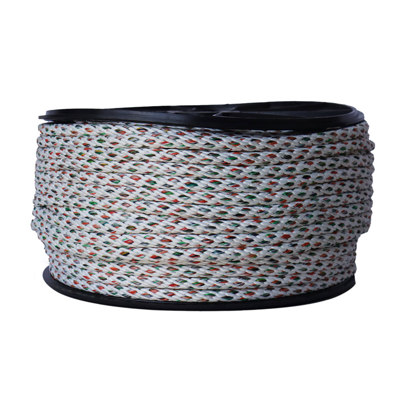 Soga trenzada al 100% trenzada sin alma con acabado de diferentes tonos carrete x 110 metros hecho con polipropileno al 20% de alta tenacidad y poliester texturizado al 80%. Dimensiones del carrete altura 20 cm, tapa diametro 30 cms. Producto multiusos en zonas ganaderas, vehiculos de carga. No se recomienda para uso deportivo.