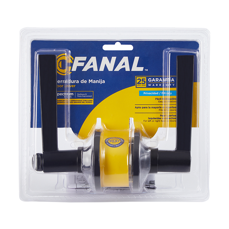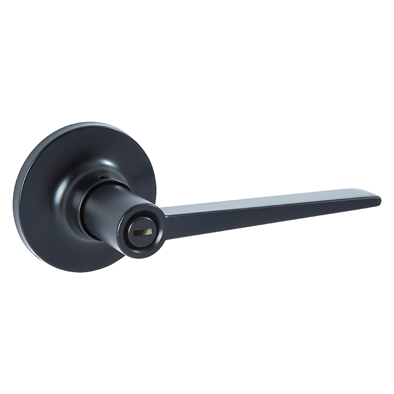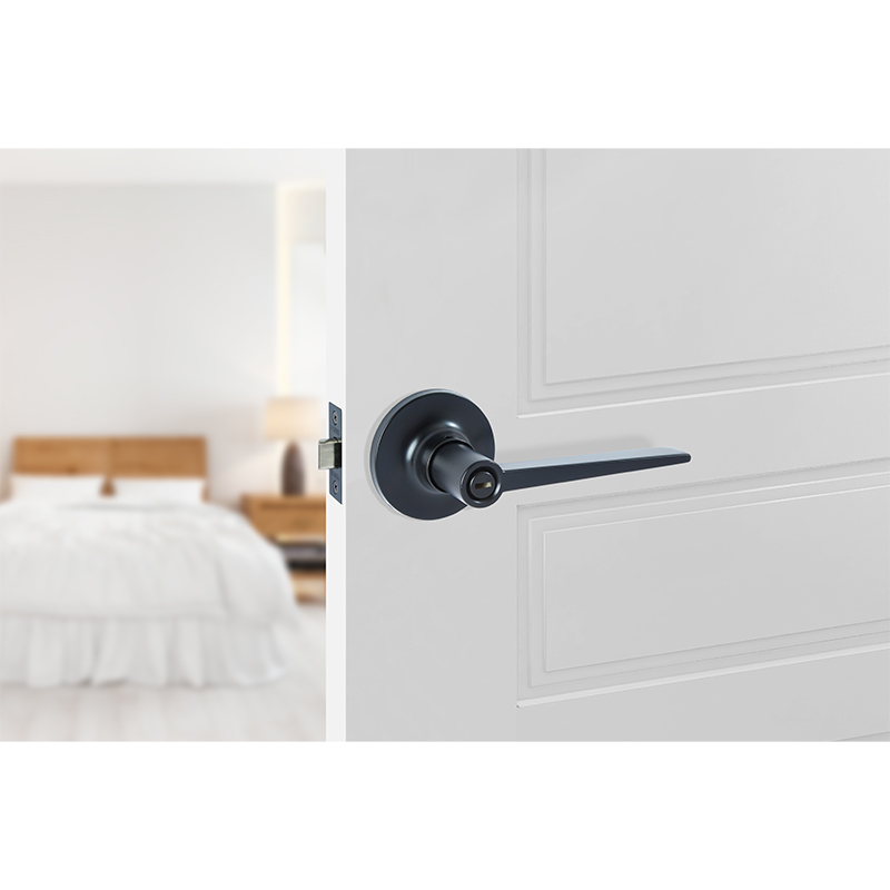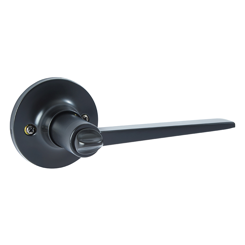 Cerradura de Manija para Baño con Mecanismo Tubular de la Familia Rennes. Fabricada en Acero Inoxidable, Acabado Negro Mate. Muy facil de instalar no requiere ser un cerrajero experto para poder instalarla. Llaveo: Bocallave y Mecanismo de Tambor de 5 Pines que Permite Mayor Seguridad. Centro de Puerta tradicional a 60mm - 70mm y para Espesores de Puerta Convencionales (35mm - 48mm). Roseta interna y externa circular. Empaque tipo clear pack y sistema interno de mariposa ó pestillo que no permite que se bloquee la cerradura. Dimensión Exterior de la Manija 112mm (del Centro del Tambor al Extremo).