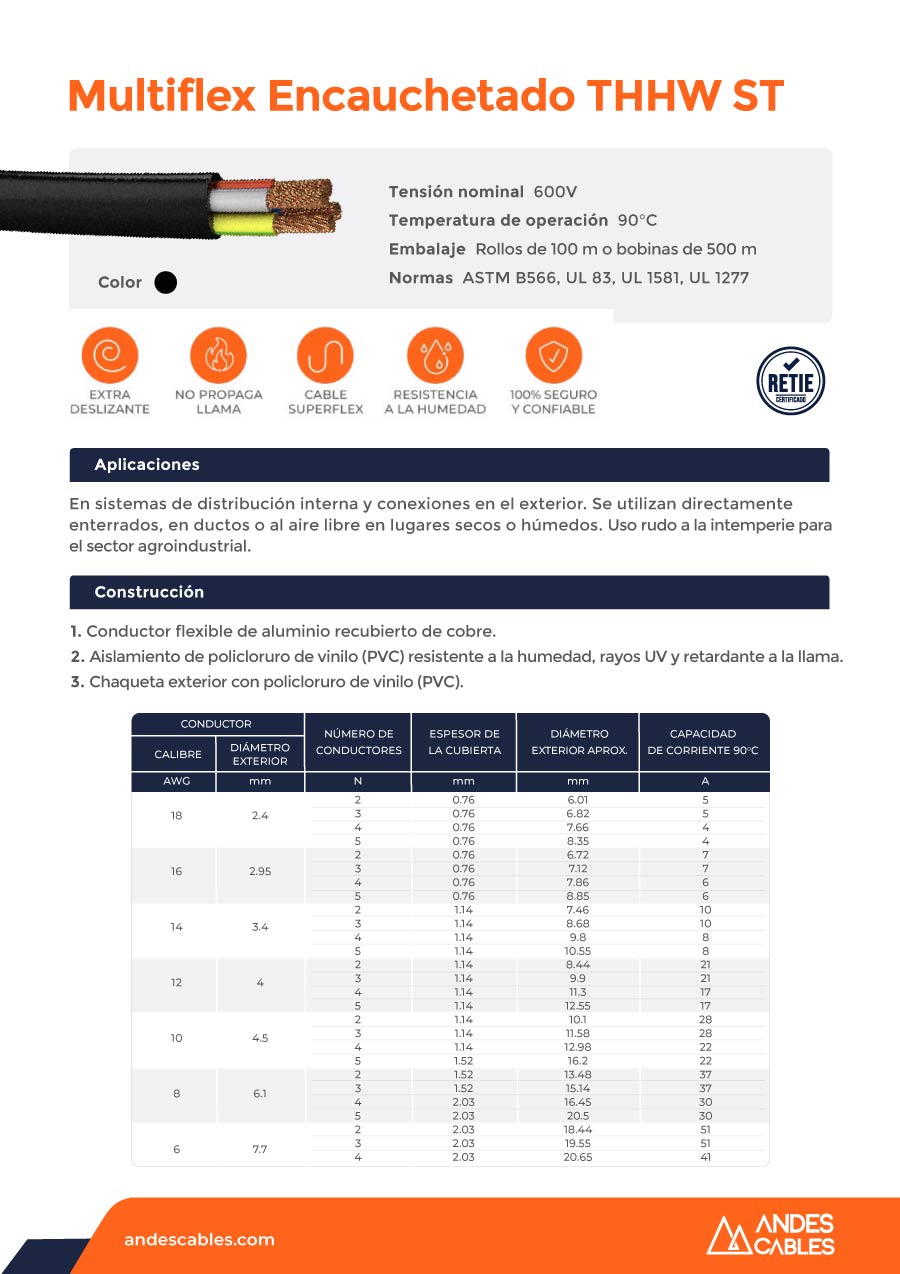 Cable Encauchetado - THW Color Negro -Tensión nominal 600 V - Temperatura de operación 90ºC, Rollo de 500 metros.
