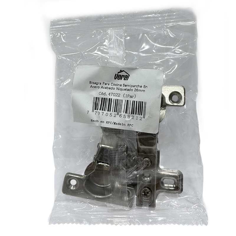 Bisagra de cocina parche o semiparche en acero, con acabado niquelado de 26mm, está fabricada en acero Cold Rolled con recubrimiento electrolítico de níquel, brindando mayor durabilidad y resistencia a la corrosión. Cuenta con ajuste de altura y profundidad para una instalación precisa y un ángulo de apertura de 110 grados. Es ideal para tableros con espesores de 15mm a 18mm, con una capacidad de carga de hasta 1.5 kg por par. Su ciclo de vida es de hasta 40,000 aperturas y cierres. Esta bisagra es perfecta para muebles de cocina, baños, laboratorios, consultorios y muebles de hogar.