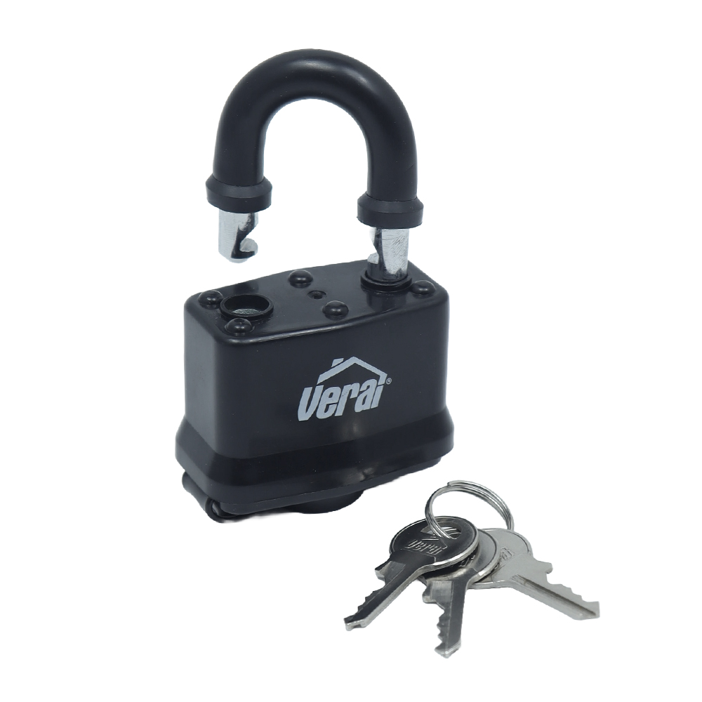 Su arco de acero endurecido y cuerpo de lámina de acero zincada proporcionan una alta resistencia a la corrosión y al desgaste. El cilindro de 5 pines en latón asegura un nivel de seguridad adecuado, mientras que el cuerpo y gancho cubiertos con funda encauchetada protegen el candado de los efectos del clima. La ranura de la llave también está cubierta para prevenir la oxidación. Incluye tres llaves, lo que ofrece comodidad y facilidad de uso, convirtiéndolo en una opción ideal para exteriores y entornos con condiciones climáticas difíciles.