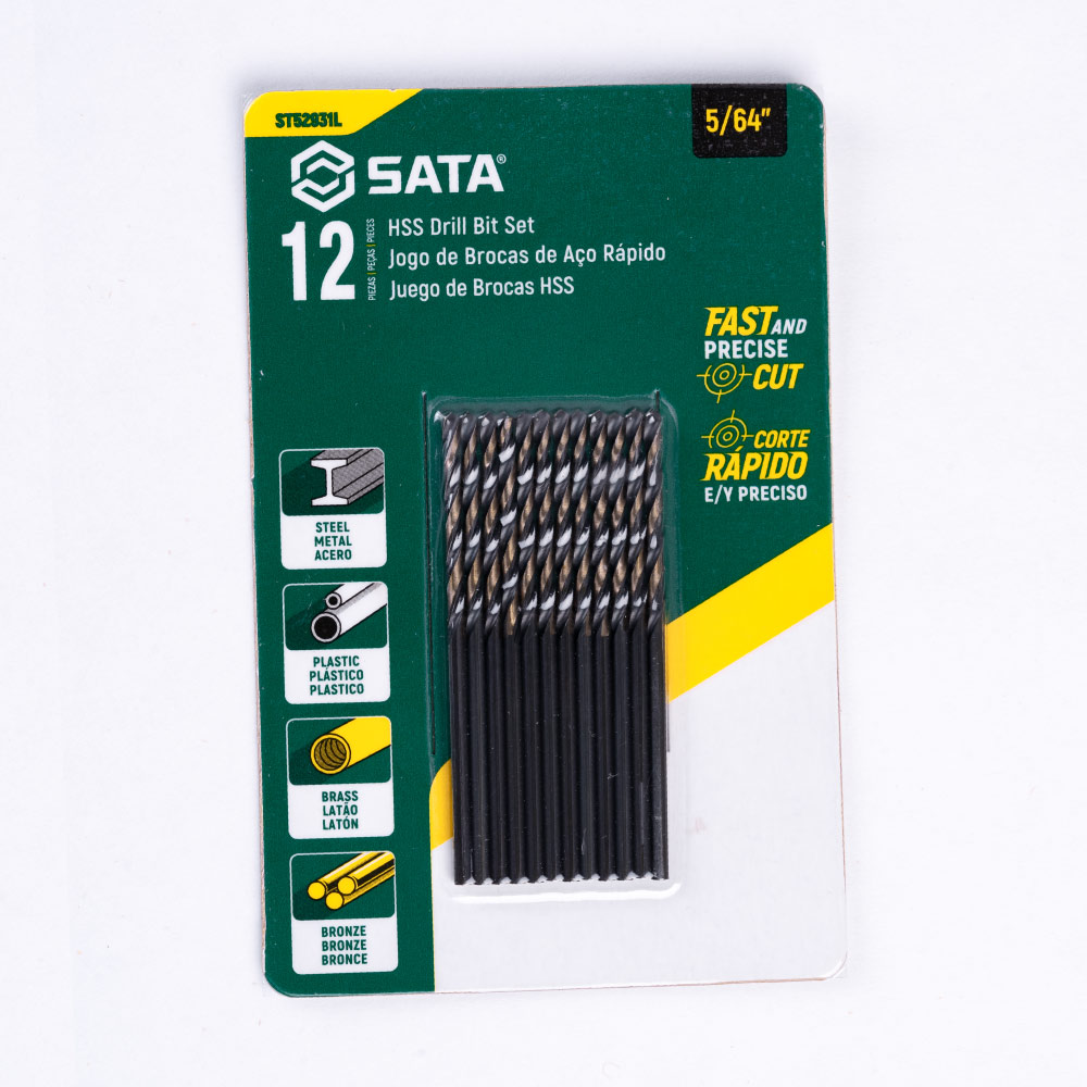Las Brocas SATA® están fabricadas en acero rápido High Speed Steel (HSS) M2, aleación de Tungsteno (7%) , Molibdeno (5%) que brinda alta resistencia al desgaste, un filo más duradero para mayor velocidad de penetración, desempeño superior a altas temperaturas, brindándole altos niveles de dureza y un rendimiento óptimo para todo tipo de trabajo. También viene con espiral de curvatura suave para fácil y rápida remoción de residuos, eje endurecido para mayor resistencia a la rotura y con un ángulo en punta de 135° dándole mayor precisión en la perforación inicial. Cumple con la norma ANSI B94.1 Largo 10.20 cm