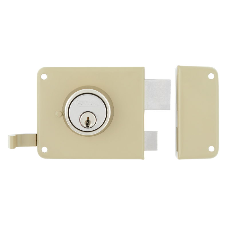 Cerradura de Sobreponer Pasador Cuadrado Lado Derecho Instala-fácil, 25 años de garantía. Cuerpo en Acero. Para Instalar o soldar en Metal o Instalar en Madera. Cuenta con 5 Pernos de Seguridad, Pasador de Seguridad accionable en 3 Pasos, Manija reversible con tornillo, a diferencia de otros modelos esta cerradura Incluye 3 llaves. Centro a puerta 50 mm, Cilindro Suelto Cubierto que Permite Trabajo en Puertas de Diferentes Espesores (35 - 60mm), Color Beige. Como Identificar el lado de la puerta: deberás Pararte Frente al Exterior, Si las bisagras están en el lado derecho, la puerta es derecha y si las bisagras están instaladas del lado izquierdo, la puerta es izquierda.