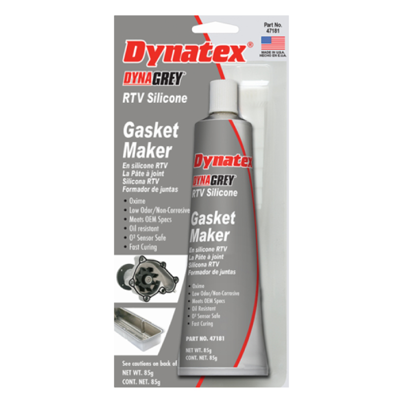 Dynatex® DynaGrey® Silicone Gasket Maker es un compuesto para juntas vulcanizante a temperatura ambiente de un solo componente,neutro, diseñado para proporcionar juntas confiables "formadas en el lugar" para ensamblajes mecánicos. El material es una pasta que no se desmorona y se cura hasta convertirse en un sólido gomoso resistente a temperatura ambiente al exponerse a la humedad del aire. El producto resiste el envejecimiento, la intemperie y los ciclos térmicos sin endurecerse, encogerse ni agrietarse. Dynatex® DynaGrey® Silicone Gasket Maker está diseñado para proporcionar mayor resistencia al aceite, buena adhesión y flexibilidad; es seguro para el sensor y no corrosivo. resiste hasta