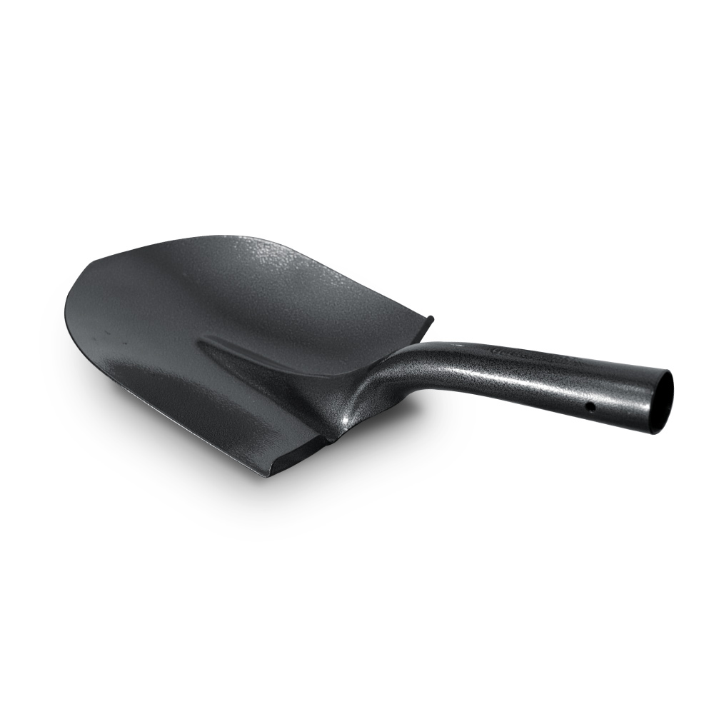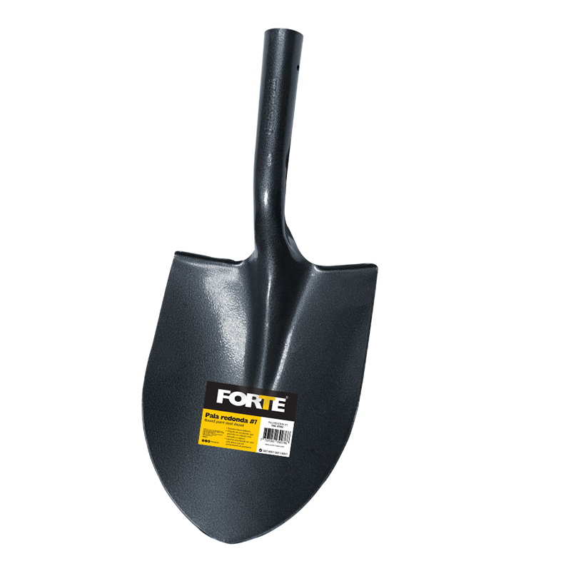 Pala fabricada en acero al manganeso 65Mn. Dureza: por templado HRC 42 a 48. Flexible y resistente. Pestaña hacia adelante. Peso 2 Libras.