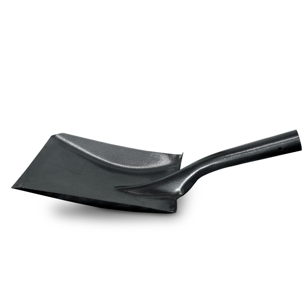 Pala fabricada en acero al manganeso 65Mn. Dureza: por templado HRC 42 a 48. Flexible y resistente. Pestaña hacia adelante. Peso 2.1 Libras.