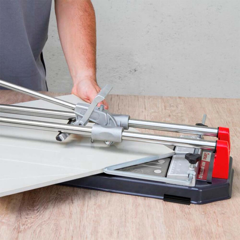 Cortadora con separador autoposicionable, proporcionando rapidez y facilidad de uso. Corta materiales ceramicos y Porcelanato, Bandejas para apoyo de la pieza en chapa de acero niquelada. Limitador lateral para cortes rectos y diagonales precisos. Barra de soporte en aluminio inyectado proporcionando alta resistencia y durabilidad. Soporte de las guías en aluminio inyectado. Base de chapa en acero de carbono con pintura electrostática en polvo. Longitud de corte: 90 cm. Corte en diagonal: 64 cm x 64 cm. Espesor de corte: 12 mm.