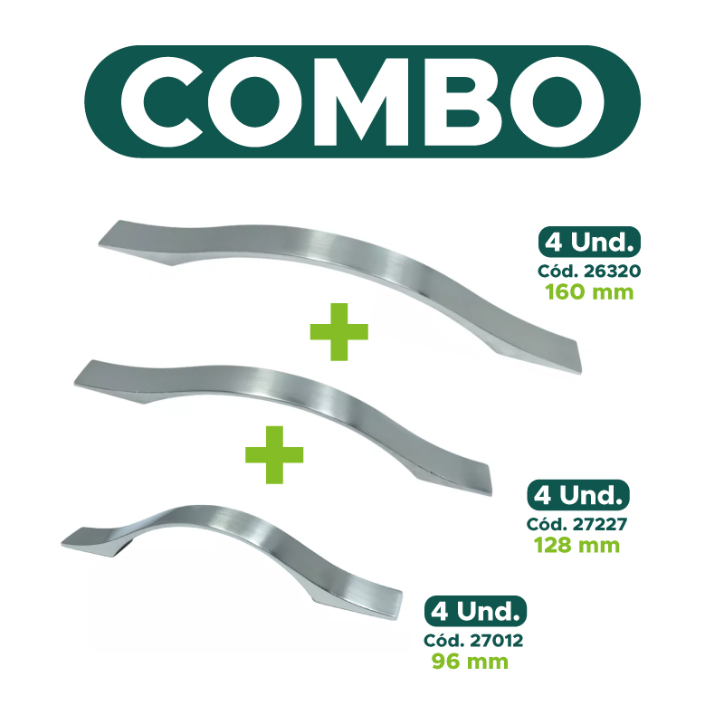 Combo Tiradera Cocina Semi Arco Niquel 96mm X4, 128mm X4, 160mm X4