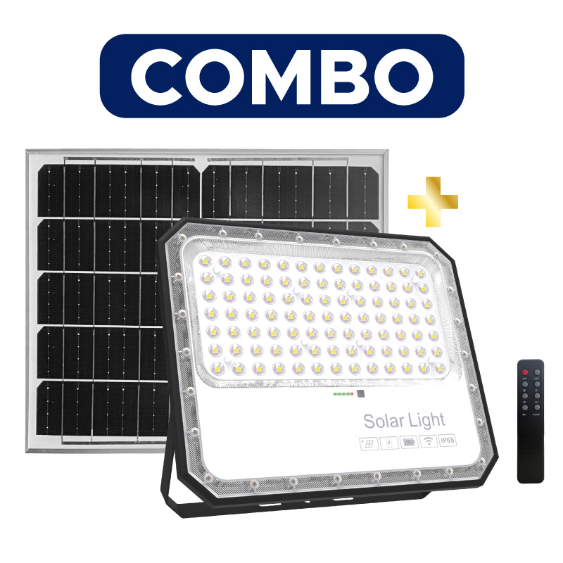 Reflector Solar Potencia: 20.48W-3,2VDC/200W-120VAC, Flujo Luminoso: 2200 lm, IP65, Angulo de apertura:120°, Luz Blanca 6500K, Voltaje: 3.2 VDC, Vida util: 35.000 horas, IRC:70, Protección IK 04 + Panel Solar Tipo de batería: LitioTiempo de Carga: 4-6 HrsAutonomía: 12-14 Horas (dependiendo la configuración y nivel de carga)Temperatura de operación: -20 a 50°C.Sensor de Luz: Si