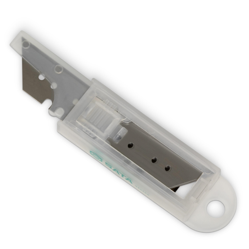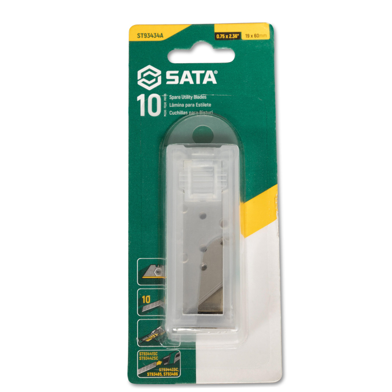 Hoja de repuesto trapezoidal fabricada en acero SK2 de alta calidad con puntas afiladas. Repuesto para estas referencias: ST93647, ST93642, ST93624G. El embalaje está diseñado para acceder de forma segura y sencilla a las cuchillas de repuesto, lo que reduce el riesgo de lesiones. Contiene 10 cuchillas por empaque