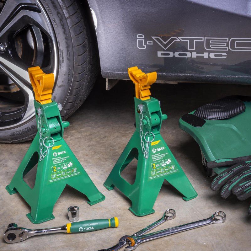 Las Torres de bloqueo cuentan con pasador de seguridad que proporciona mayor seguridad y evita que los soportes del gato se bajen. El sistema de ajuste rápido facilita el ajuste de altura. La base reforzada garantiza mayor estabilidad y seguridad. La barra de trinquete multiposición permite ajustar la altura en 10 posiciones diferentes. La construcción de acero resistente proporciona mayor durabilidad. Certificación GS. Garantía de 12 meses